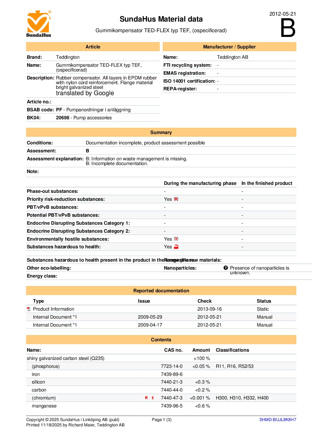 Gummikompensator TED-FLEX typ TEF_SundaHus